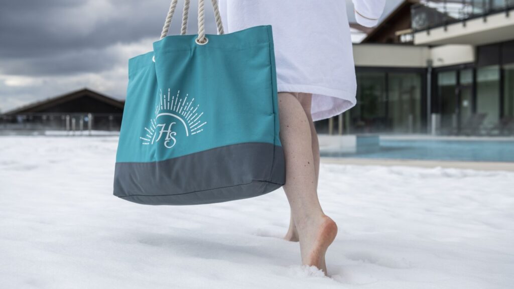 - Wellnesstasche mit Bademantel und Bade-/Saunatüchern